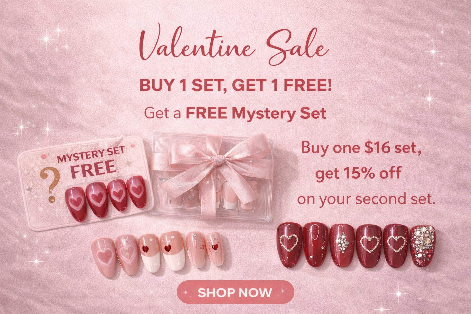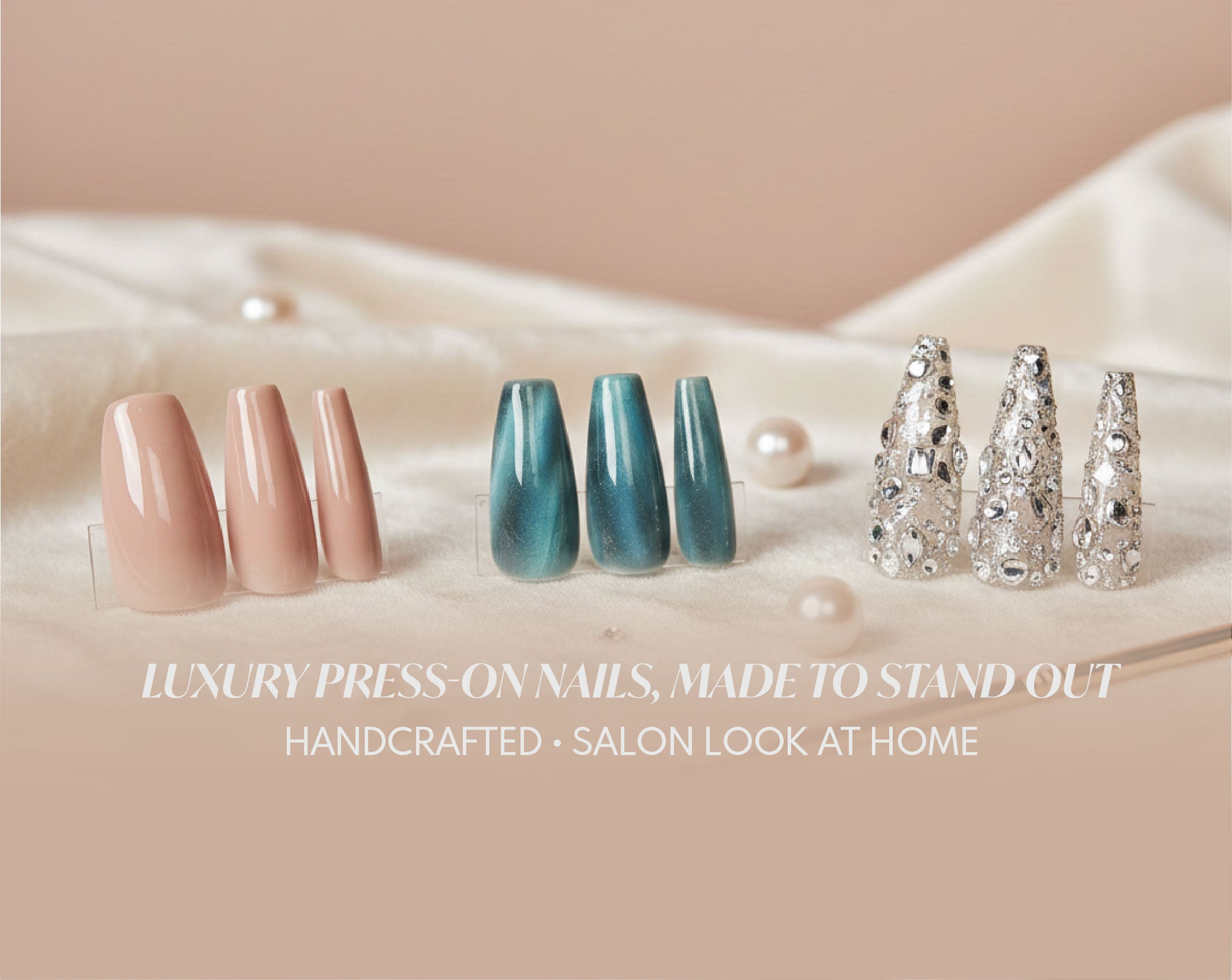 Ready Set Press On was created for anyone who wants salon-quality nails without the salon time or price. Our hand-painted press-ons are quick to apply, long-lasting with proper glue, and far more affordable than traditional manicures. Beautiful nails—ready to wear, anytime.